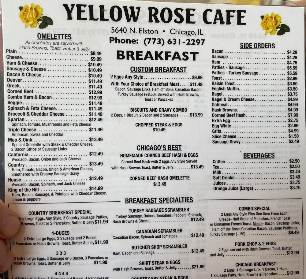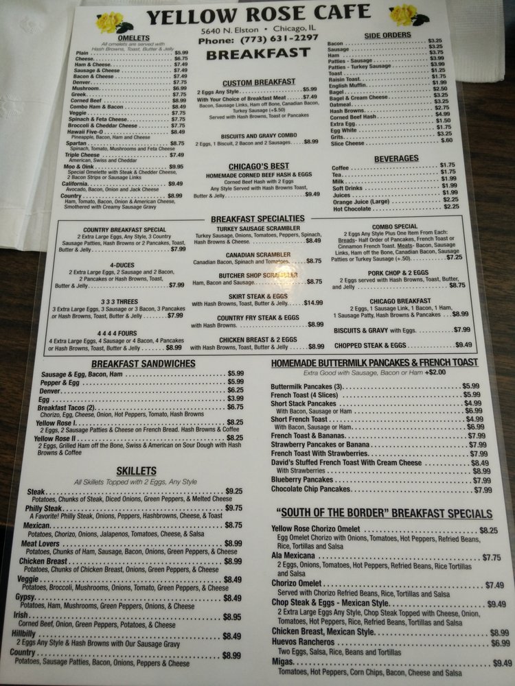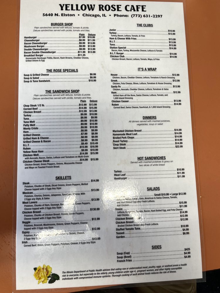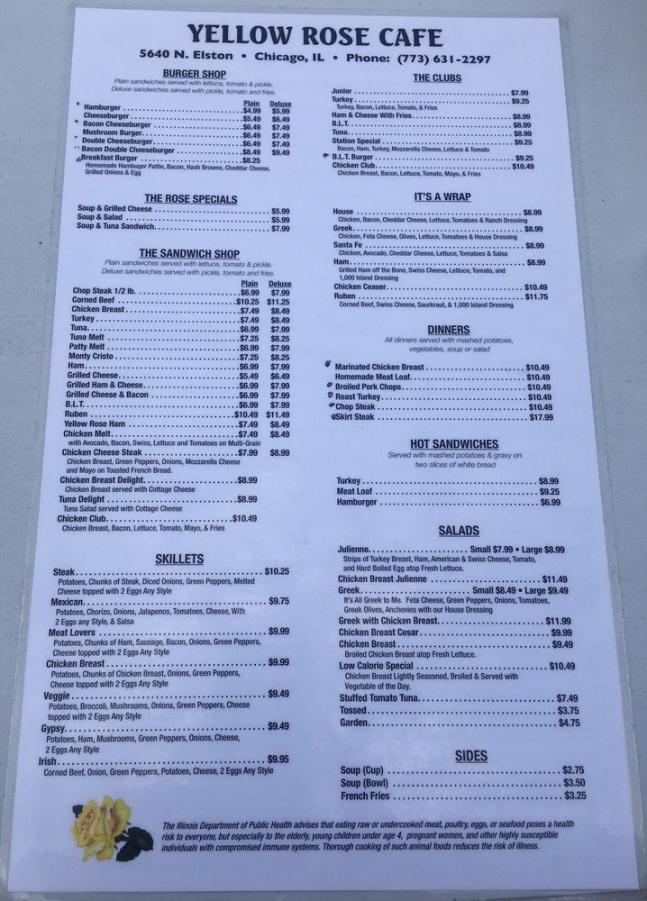 The cafe is gender-neutral restroom friendly, offers free Wi-Fi, and has outdoor seating for those looking to enjoy their meal in the fresh air. While the cafe only accepts cash, the experience of dining at Yellow Rose Cafe is truly worth it. So if you're in the mood for a taste of Chicago nostalgia, make sure to stop by Yellow Rose Cafe for a delightful dining experience.